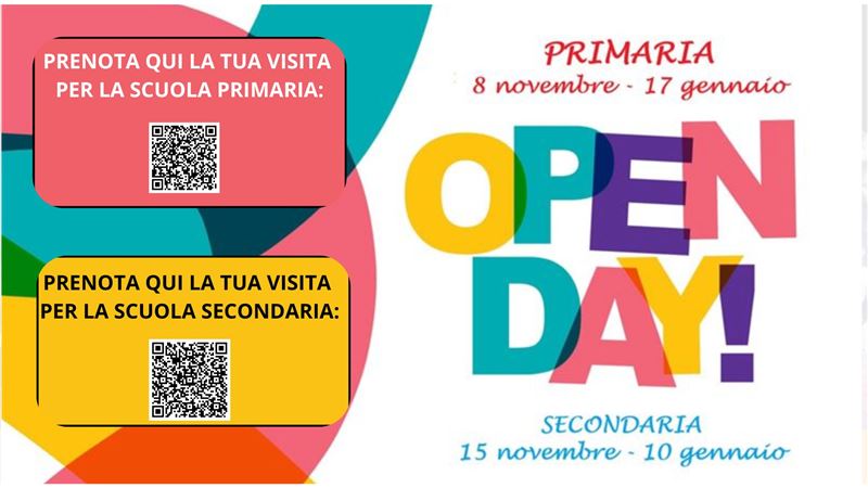 nel mese di novembre inizieranno gli appuntamenti di quest'anno scolastico 2025-26, per conoscere la nostra scuola, la sua offerta formativa e visitare la struttura. Gli appuntamenti continueranno anche nel mese di gennaio. Abbiamo organizzato delle visite guidate alla scuola nei giorni sopra indicati sia per la scuola Primaria, sia per la scuola Secondaria, con la possibilità di accedere in piccoli gruppi e interloquire direttamente con le maestre e i docenti con la presenza dei futuri alunni. Gli appuntamenti continueranno anche oltre il termine di gennaio per cui contattateci per avere informazioni.